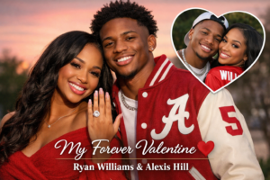 Hill shared photos on Instagram on February 14, 2026, showing off a large diamond ring along with a picture of the couple together. Her caption read, “My forever valentine,” instantly sending Alabama fans into celebration mode.